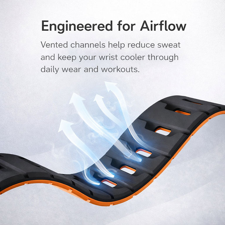 Vented airflow channels help reduce sweat and keep your wrist more comfortable throughout the day.